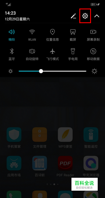 调出通知栏以后,点击通知栏右上角的设置图标。
