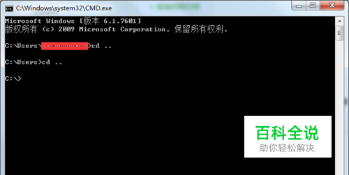 在命令行界面输入cd ..(注意cd后有空格)后按【Enter】键进入上级目录; 在输入cd ..后按【Enter】键进入根目录