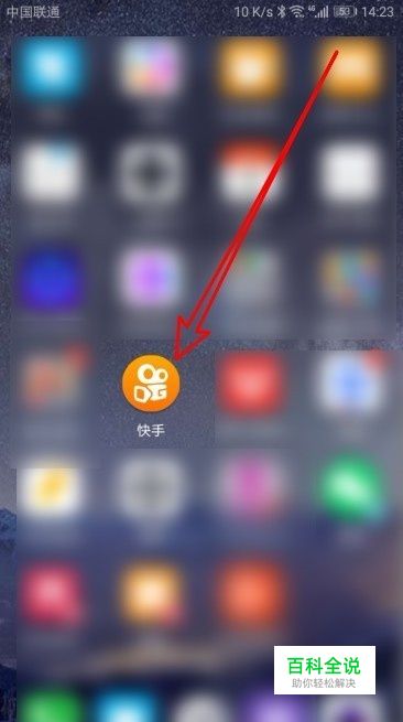 在手机上左右的滑动屏幕,在屏幕上找到安装好的“快手”的图标。