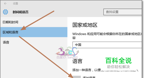 首先是添加英语语言,按下图路径,进入【设置】中打开【时间和语言】-【区域和语言】-【添加语言】。