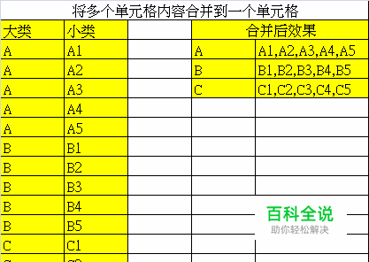 EXCEL合并多个单元格的内容到一个单元格,如一个大类,含多个小类,将多个小类合并到一个单元格内