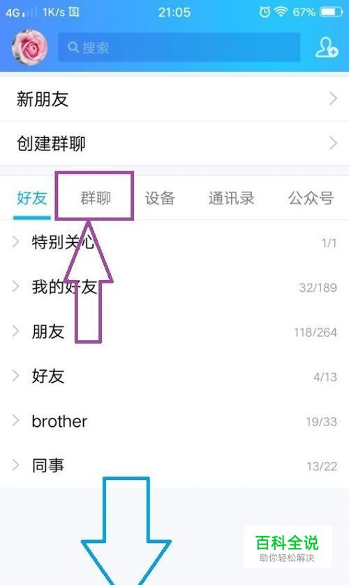 首先要打开手机QQ,在下方的菜单中找到“联系人。”在“联系人”的页面上可以看到“群聊”。
