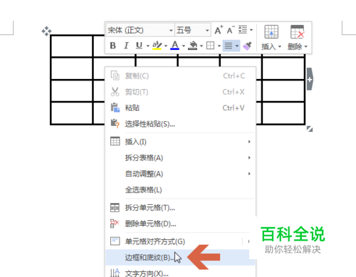 再用鼠标左键点击右键菜单中的【边框和底纹】。