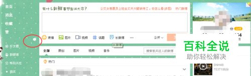 首先进入你的新浪微博,如图这个界面。看到红圈圈这个按钮了吗,点一下这个哦。