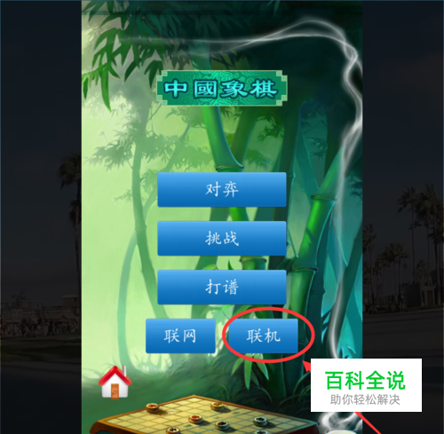 . 首先,我们打开中国象棋游戏APP,在中国象棋首页面的右下方处找到“联机 ”按钮,点击打开中国象棋的联机选择方式页面 。 .