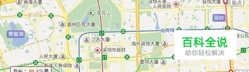 这时候鼠标就变成了测量距离的工具,然后在百度地图中找到出发地,然后点击选中作为起点。(如下图)