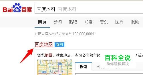 首先打开浏览器,来到百度主页,在搜索框中输入“百度地图”,然后在结果页中找到百度地图官网,并点击进入。(如下图)
