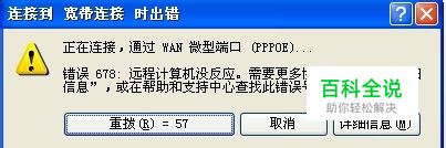 PS:678提示远程计算机无反应情况下确定宽带账户不欠费的情况。