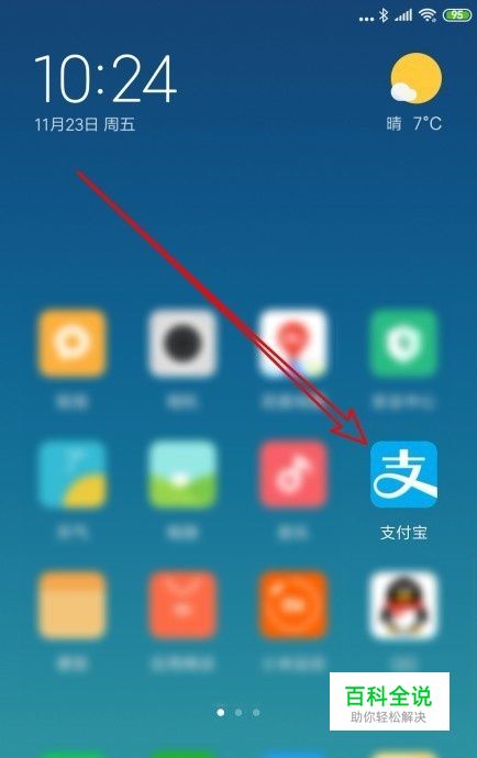 首先我们在手机上左右滑动屏幕,找到已安装好的支付宝的图标。