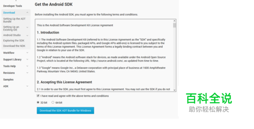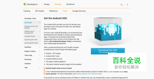 最正统的,莫过于Google官方提供的ADT Bundle了 网址是http://developer.android.com/sdk/index.html 如下图,点击Download the SDK
