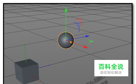 关闭对话框; 我们可以看到,现在坐标轴显示在立方体上; 若想显示在球体上,又怎样操作呢? 在界面右上方这个面板这里,点开组,展开球体和立方体 鼠标点下球体,这时,球体上显示出坐标轴了。若想立方体显示坐标轴,再点下立方体即可。