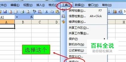 在工具栏菜单中选择“工具”选项,在工具栏最下面选择“选项”,如图;