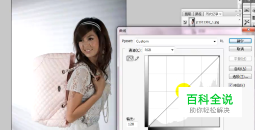 通过对图片明暗度的分析,在菜单上选择“图像”—“调整”—“曲线”,把曲线面板调出来,把图片先整体调亮,曲线往上调节是变亮,往下调节是变暗,故把曲线往上调节,使图片整体变亮。