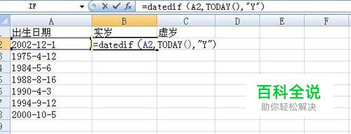 Excel中计算年龄实岁,虚岁--Datedif函数的使用