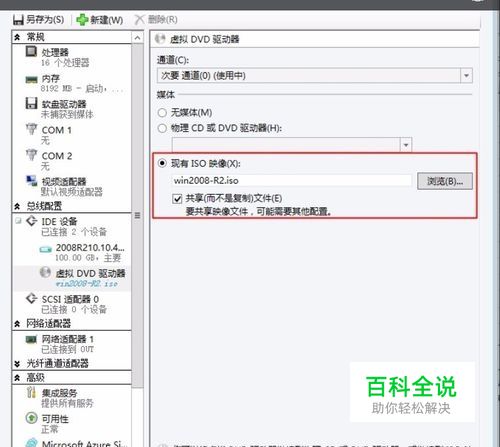 在虚拟机的光盘中选择Server2008R2的ISO,并去确定(如果是物理机,直接把ISO刻录成光盘,放入光驱即可),如图。