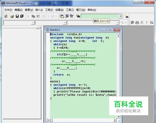 双击打开,blank1.c,即可进入vc++6.0编辑界面
