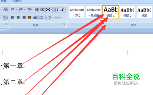 首先标题的选择上要规律。比如图中的第一章、第二章、第三章等,选择标题1的规范。