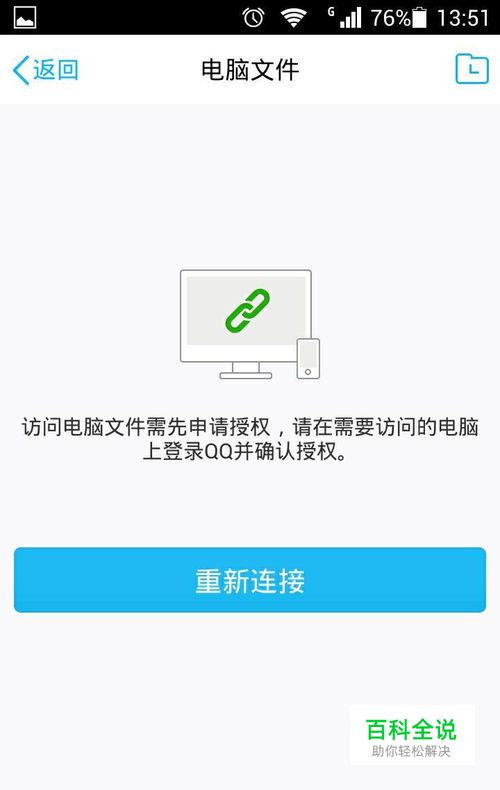 进入电脑文件界面之后,如果是第一次使用首先需要电脑进行授权才能访问,点击 重新连接开始请求授权操作。