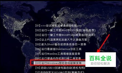 制作好U盘启动盘后,设置好BIOS,进入U盘启动界面,小编以自己的U盘为例,点击 “运行Windows 登录密码破解菜单/清除Windows 登录密码(修改密码)”选项