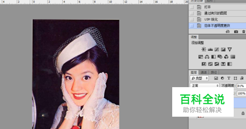 降低不透明度 同样的,如果觉得锐化过了,可以降低一点图层的不透明度,降低锐化的影响。如下图所示。