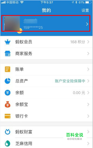 手机登陆支付宝,点击【我的】—上方头像栏