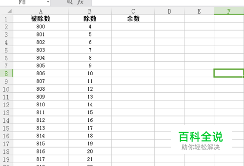 然后利用MOD函数来进行余数的,MOD(数值,除数)就两个参数 的,这个是MOD函数的一种用法就是计算余数,然后算好后直接下拉就可以了的,如图所示