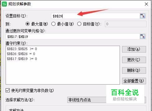 设置所需要计算得目标,如图所示,接下来设置可变区域和条件约束设置。