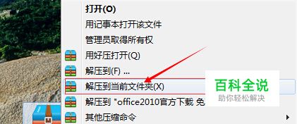 office2010产品密钥25位及激活工具的使用方法,第1步:首先退出杀毒软件,以免误杀导致安装激活失败。然后下载office2010官方下载 免费完整版,点击右键-----解压当前文件夹,