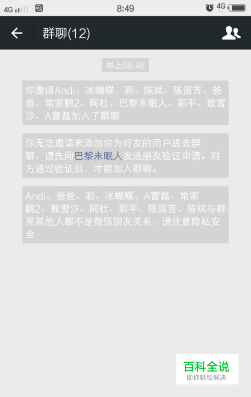选中一些人,加入群聊(注意:一次只能添加一部分人加入群聊,你可以多添加几次),蓝色字体的为他是你的的好友,你不是他的好友;灰色字体为双方彼此之间是好友。