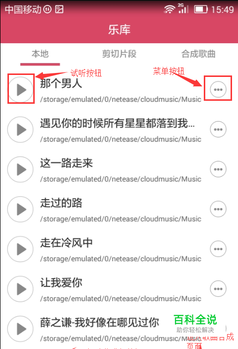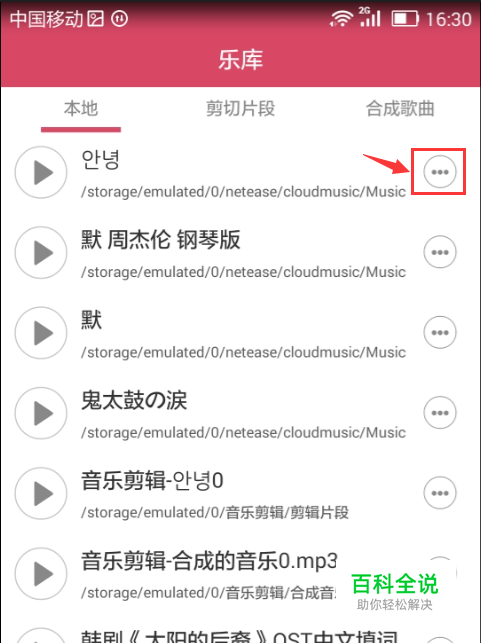 4、(剪辑歌曲保存路径)在剪辑或者合成完成后,歌曲会在对应的列表中显示,同时这些歌曲都会保存咋本地一个名为“音乐剪辑”的文件夹中,如果需要找到该歌曲,只需要打开文件管理器并找到“音乐剪辑”的文件夹