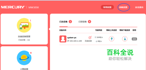 在浏览器中输入192.168.1.1(水星路由器默认IP) 并输入路由器用户名和密码(默认路由器用户一般为admin,密码可查看路由器底部标签),进入路由器管理页面。