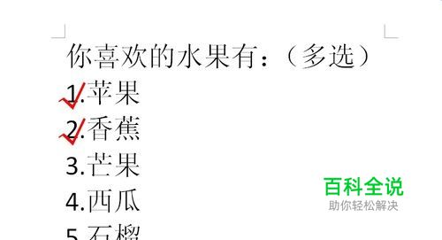 如图的选择题,在你喜欢的水果前面打上红色的钩,怎样操作呢?