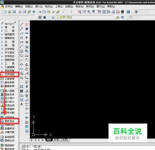 第一步: 在天正环境中打开要转存为t3格式的文件。 在天正主菜单,点击“文件布图”,在弹出的二级菜单中,点击“旧图导出”。