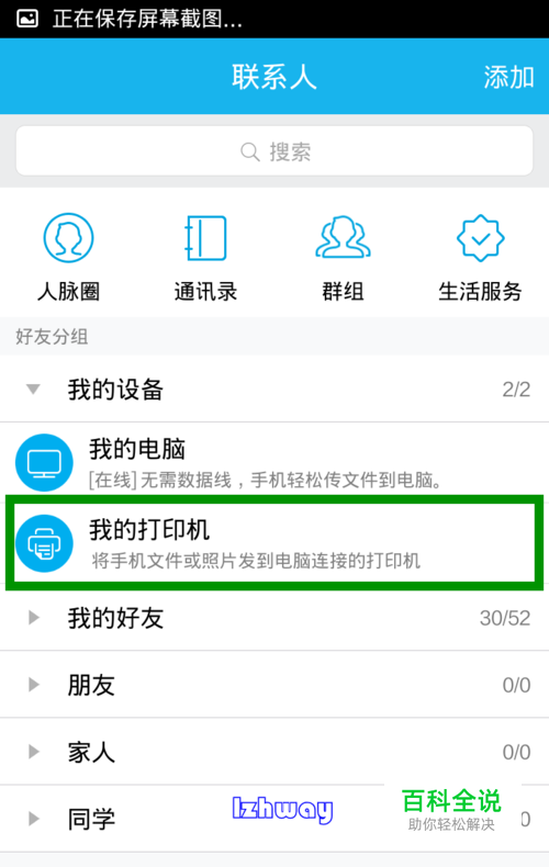 点击“联系人”在联系人界面,可以看到“我的打印机”
