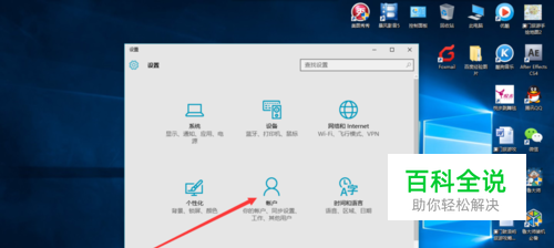 进入到设置界面后,找到“帐户(你的账户、同步设置、工作、其他用户)”选项,单击账户进入到账户设置界面就可以进行开机密码的设置了。
