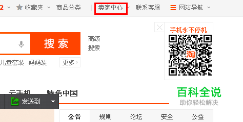 打开淘宝网站,进入首页,然后登录用户名和密码,登录以后,点击上边的卖家中心按钮,进入。