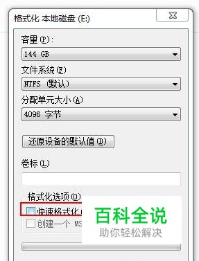 方法二、利用格式化硬盘分区的操作来实现彻底删除文件的目地。首先将要删除的文件所在分区的其它文件拷贝到别的分区,然后在该分区上右击,从弹出的菜单中选择“格式化”,然后在弹出的窗口中取消选择“快速格式化”,点击“开始”执行格式化操作。这样也可以实现彻底删除文件的目地。