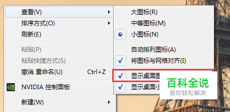 先检查文件是否被隐藏了。在桌面点击右键,选择“查看”,看看“显示桌面图标”前面有没有打钩,如果没有,勾选上,看看文件有没有出现。
