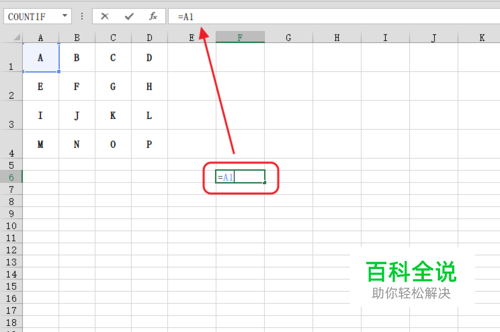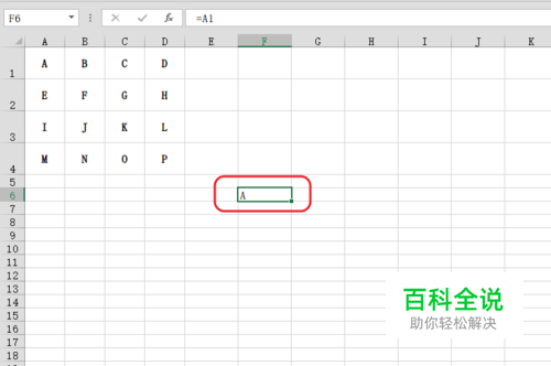 如图,有这样的一些数据,我们在F6单元格中输入【=A1】,按下回车,可以看到F2单元格的内容就与A1单元格一致了