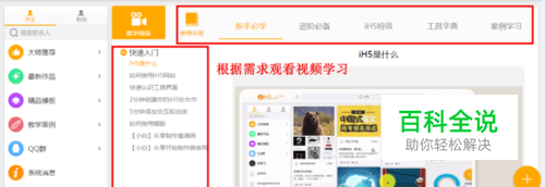 观看教学视频 对于初学者,专门设有教学视频区域,里面有对iH5各功能运用的详细讲解。我们点击右下角的教学视频,选择相应的教学视频进行观看学习,轻松上手。