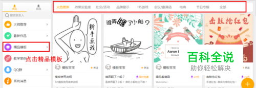 使用模板 在观看完教学视频,有初步认识后,我们可以开始创作H5啦,不过一开始就想制作出炫酷的效果,肯定是十分困难的,这时候我们可以使用一些模板,然后通过修改模板中的某一些内容元素来改编成自己的作品,使用iH5推荐的官方模板对于新手来说是制作好作品非常快捷的办法。登陆成功iH5账号后,我们点击左边栏目【精品模板】