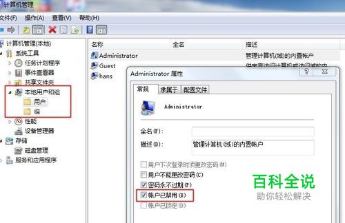 首先开启管理员账户:右击我的电脑--管理--本地用户和组--用户--Administrator右击--属性--账户已禁用去掉勾,点确定!