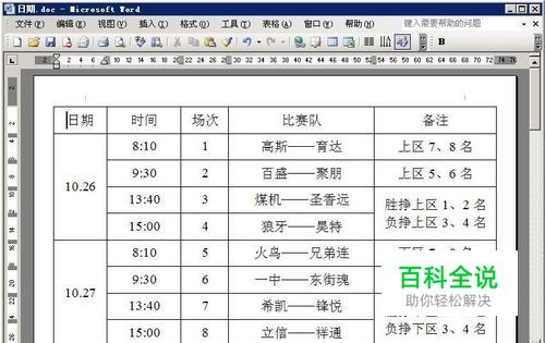 首先我们打开这样一个A3的文档,如下图所示,这是一个A3页面下设置的一个赛程表格,我们如何将这个表格直接打印为A4纸张上呢;