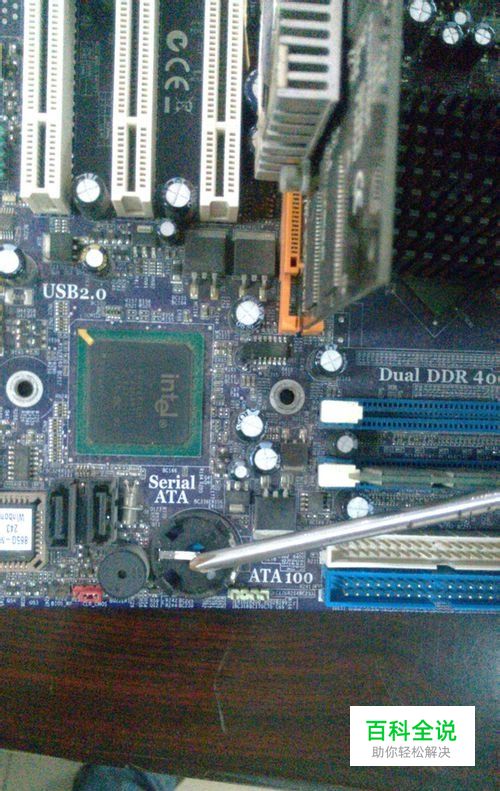 第一种:去下电池放电法。首先,我们需要在关闭计算机状态下切断电源,在用螺丝刀拧下机箱挡板的螺丝,打开机箱后,适当整理一下机箱内的线路连接,让主板的COMS电池显露出来。在机箱里面的银白色的圆形电池即为CMOS电池。如图所示。然后,取下CMOS电池。用户可以在CMOS电池安装位置的侧面找到一个金属片,只要轻轻一按即可让CMOS电池弹起。
