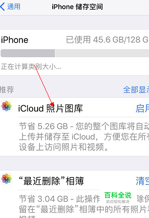 这个时候你要清理以下内存。一般照片占的内存错,点击“icloud 照片图库”清理。