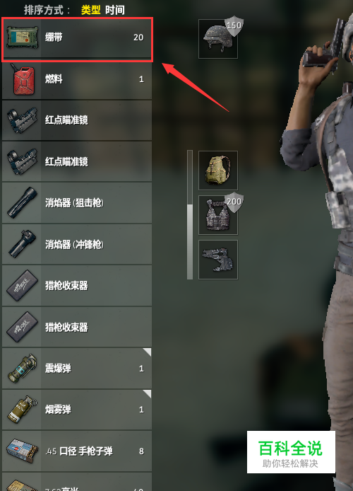 我这里只有一种绷带,(其它的物品也是同样的使用方法),在绷带处点击右键,如图所示