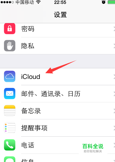 在设置找到iCloud,当然这里我们要打开进入iCloud。