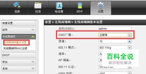 要想保护自家的WiFi网络,防止被蹭网。首先我们需要隐藏自家的WiFi信号,这样被人就看不到自己所创建的WiFi热点。设置方法:在无线路由器后台界面,切换到“无线局域基本设置“选项卡,将“SSID广播”设置为“关闭”状态。