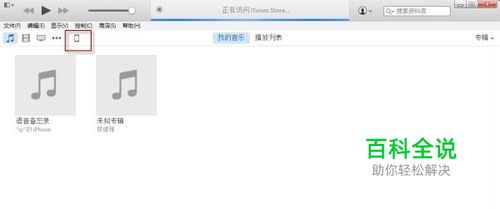 从硬盘目录中导入需要同步到iPhone手机的音乐,随后再在iTunes界面上方单击手机图标。