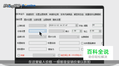 在价格设置输入价格,一般都是促销价乘以折扣。乘以一的话,则是原价不变。